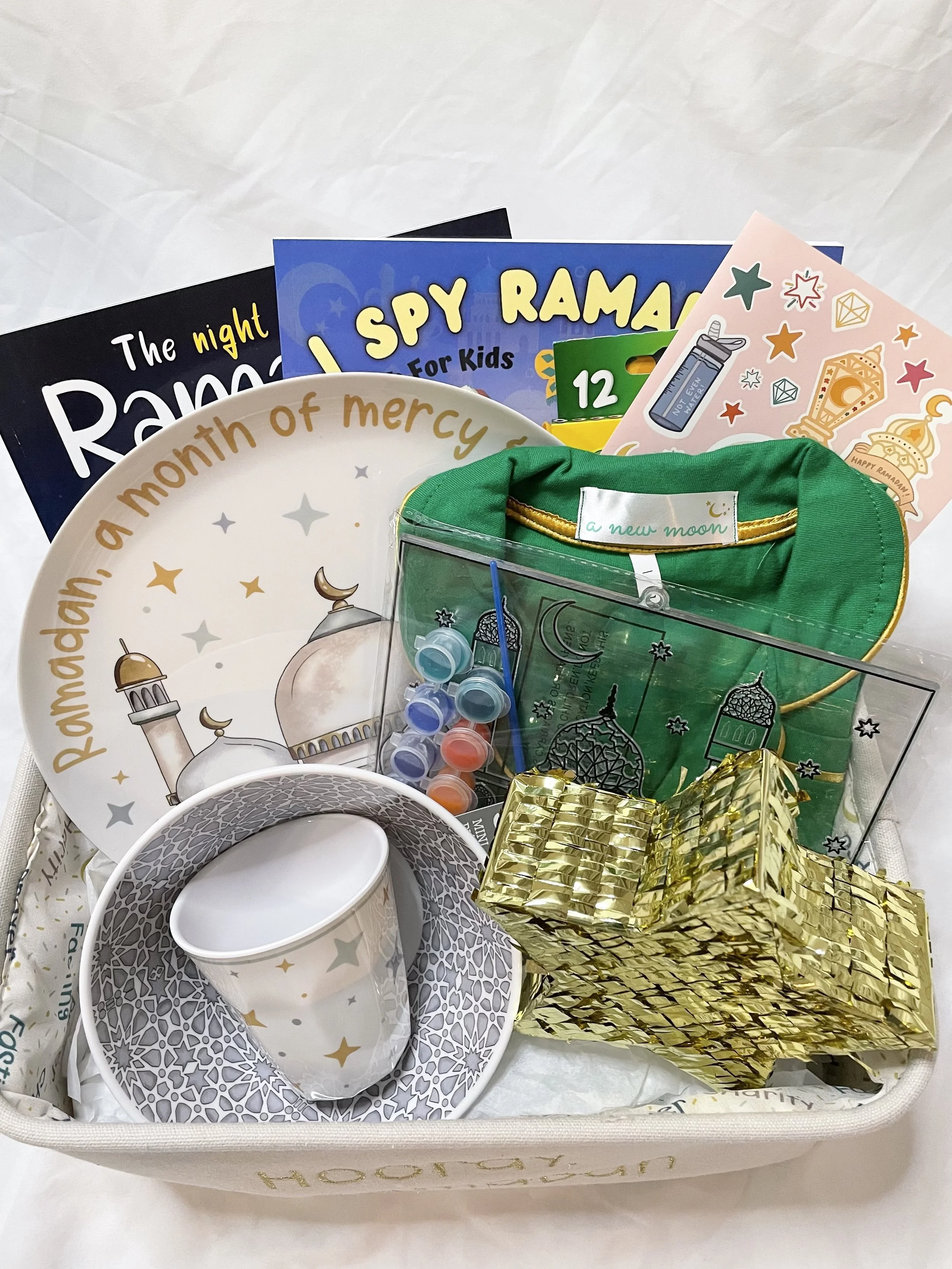 Of course, I adopted the Ramadan Tree and presents tradition from my mom, but I am also starting new traditions with my girls. The first one I want to share is their Ramadan Baskets. I started this for their second Ramadan (they were only 1 month old for their first Ramadan), and I get so excited to give them their baskets on the first day each year.